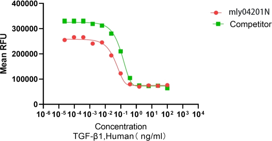 Measured in a cell inhibition assay using TF-1 cells at IL4 presence. The ED50 for this effect is  ≤0. 1ng/mL. The ED50 for this effect is  <0.5 ng/mL. The activity of  mly04201N  N was higher than other competing products.