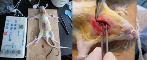 3. 術后縫合,觀察動物狀態(tài),并對電針組實驗動物進行電針治療