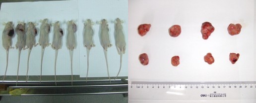 2. 前肢腋下部位附近皮下種植結腸癌細胞,濃度1X107個/100ul