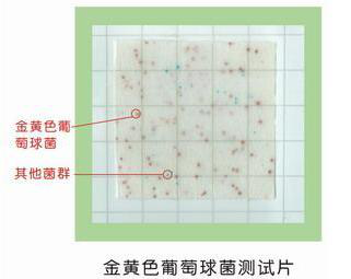 培養(yǎng)后,測(cè)試片上紫紅色的菌落為金黃色葡萄球菌;呈藍(lán)色的菌落為其他大腸菌群。出現(xiàn)陽(yáng)性菌落的樣本,最好用其他更為可靠的方法進(jìn)行驗(yàn)證,沒(méi)有條件的至少要再取樣重復(fù)檢驗(yàn)一次。